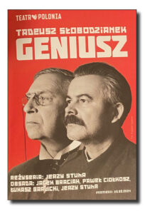 Geniusz to spektakl, w którym widzowie stają się świadkami niezwykłego spotkania dwóch wielkich osobowości XX wieku. Z jednej strony – przedstawiciela totalitaryzmu, Józefa Stalina, z drugiej – reprezentanta świata kultury, Konstantina Stanisławskiego. Spektakl ukazuje, jak idee i osobowości tych postaci wzajemnie na siebie oddziałują w niezwykle napiętej atmosferze. Z jednej strony odsłania brutalność i manipulację polityczną, z drugiej – nieustanne poszukiwanie prawdy w sztuce. Pełna napięcia gra słów i idei skłania do refleksji: gdzie przebiega granica między wolnością a zniewoleniem oraz jakie jest miejsce artysty w społeczeństwie zdominowanym przez polityczne i ideologiczne presje.